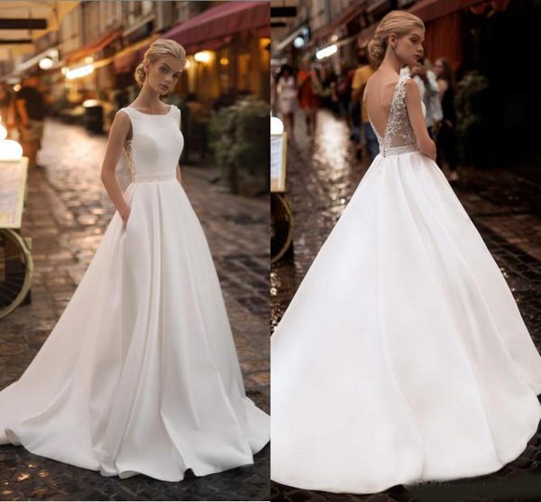 Elegant Beading Pearls Satin A Line Wedding Dresses 2019 Vintage