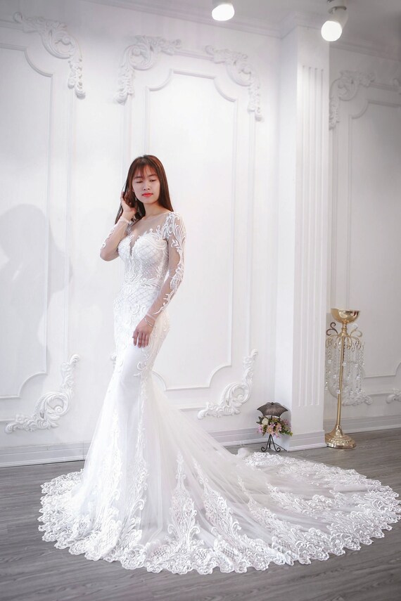 Mermaid Long Sleeves Vintage Lace Wedding Dress Sexy Bridal Etsy
