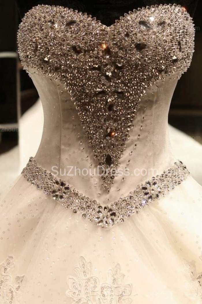 2018 Sweetheart Ball Gown Shiny Bridal Gowns Lace Applique Court