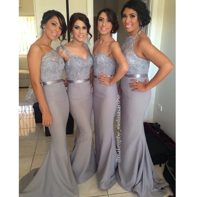 2017 Peach Chiffon Empire Mermaid Scoop Appliques Bridesmaid Dress