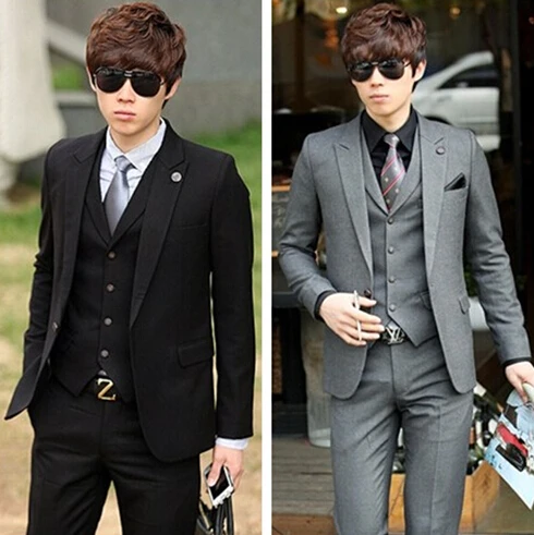 Black Gray New Suit For Men Slim Business Suit Sets Top Vest Pants