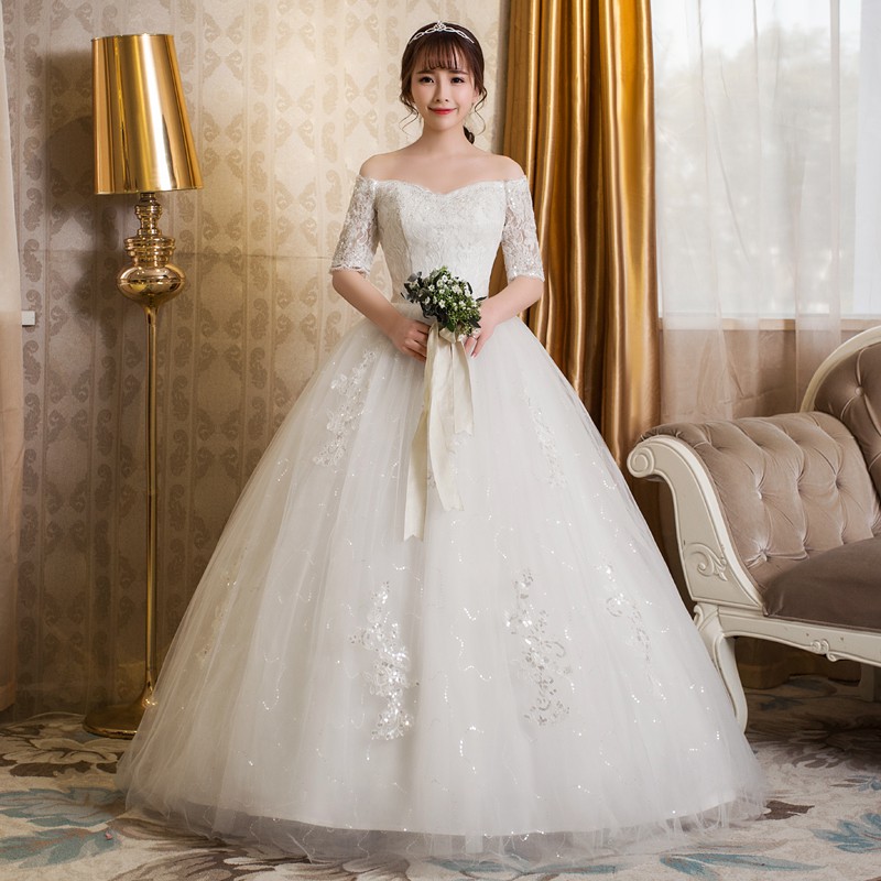 Half Sleeve Off Shoulder Lace Maxi Wedding Dress Bridal Gown