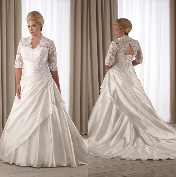 Discount 2019 Lace Plus Size Wedding Dresses V Neck Half Long