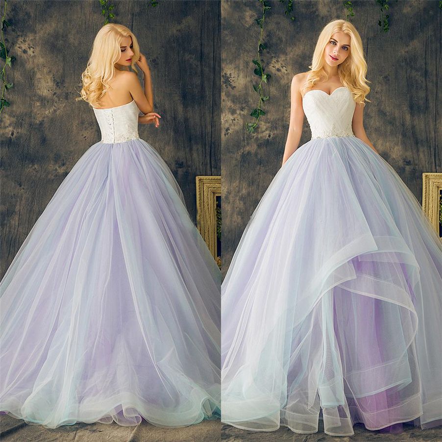 Gothic White And Purple Wedding Dresses Plus Size Long Train