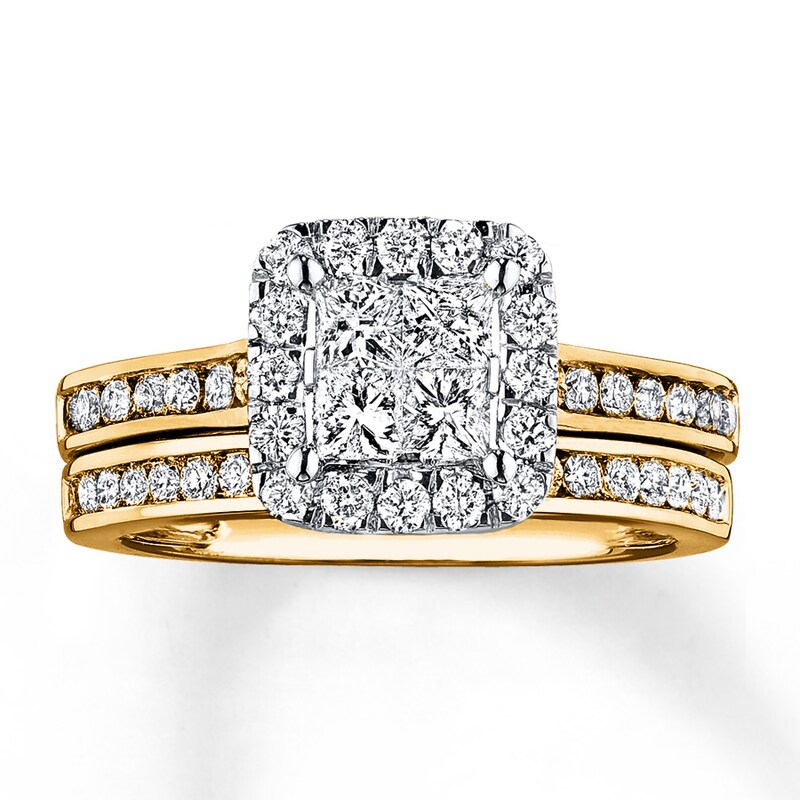 Diamond Bridal Set 1 1 8 Ct Tw Princess Round 14k Two Tone Gold
