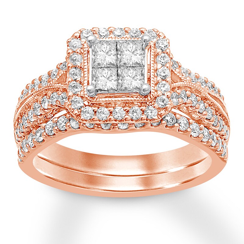 Diamond Bridal Set 1 1 5 Ct Tw Princess Round 14k Rose Gold
