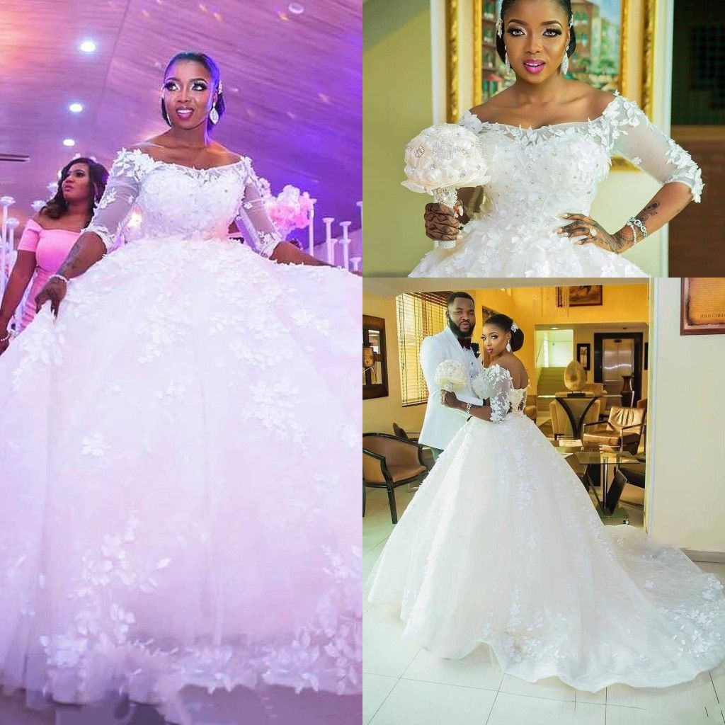 Senarai Harga 2019 New Ball Gown Puffy Wedding Dresses 3 4 Sleeve