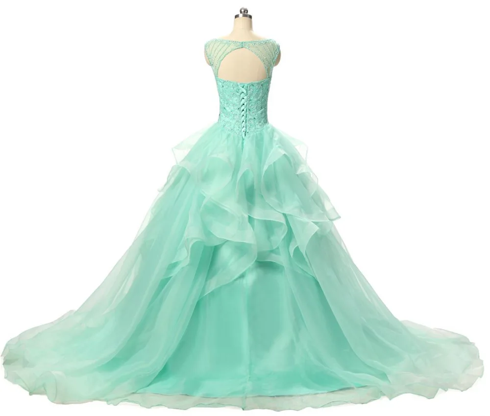 Mint Green Wedding Dresses Handmade Puffy Princess Backless Bridal