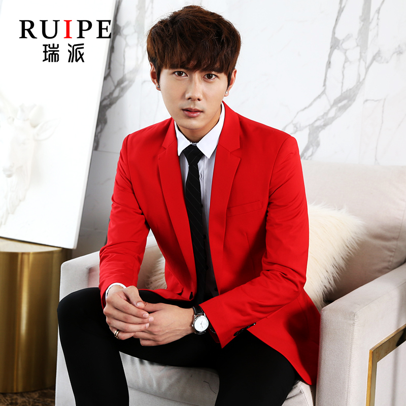 Men S Red Suit Jacket Slim Wedding Dress Casual Men S Korean