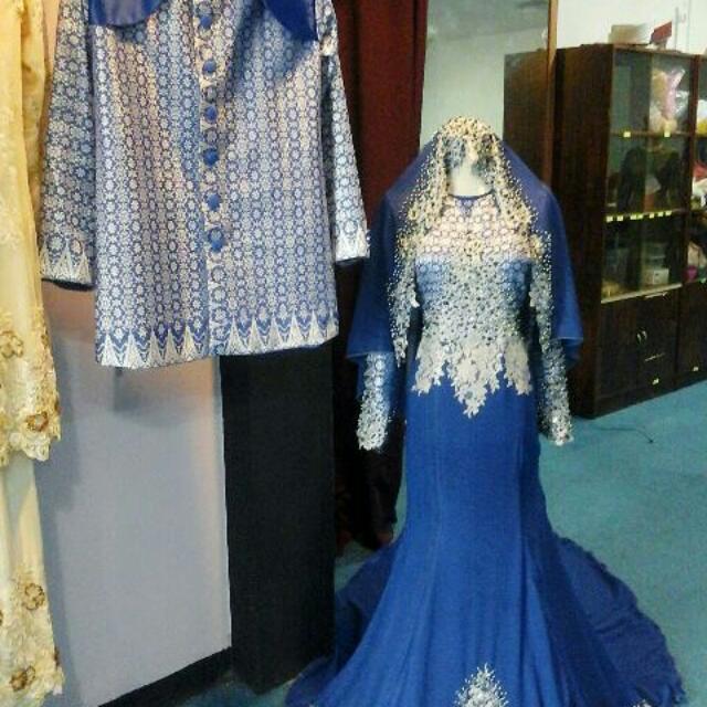 Dress Songket Royal Blue Silver Fullset Women S Fashion Bridal