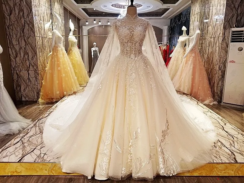 Ls5462 Unique Wedding Dresses Beading Ball Gown Lace Up Back High