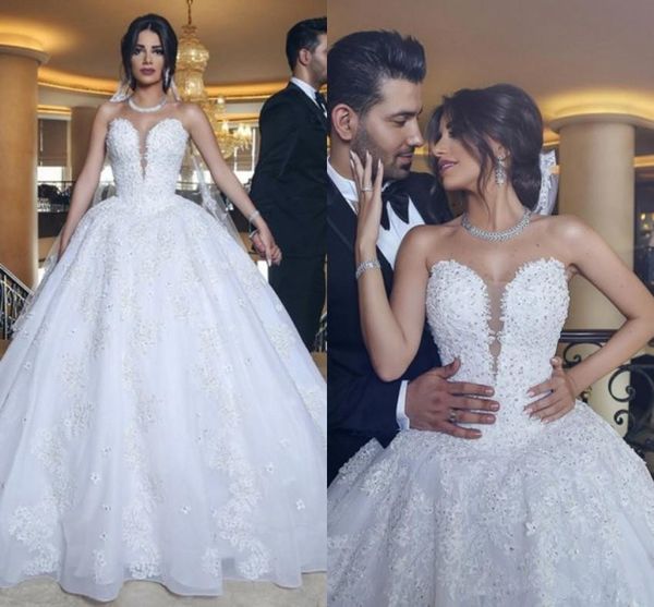 Discount Dubai Arabic Luxury Ball Gown Wedding Dresses Beadings