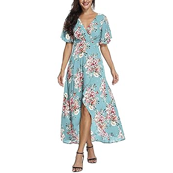 Bluestercool Women S Floral Print Summer Short Sleeve V Neck