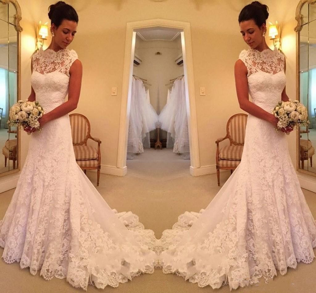 2019 Beautiful Lace Sleeveless Mermaid Wedding Dress Sweep Floor