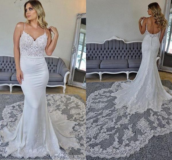 Exquisite Lace Spaghetti Straps Mermaid Wedding Dresses 2020