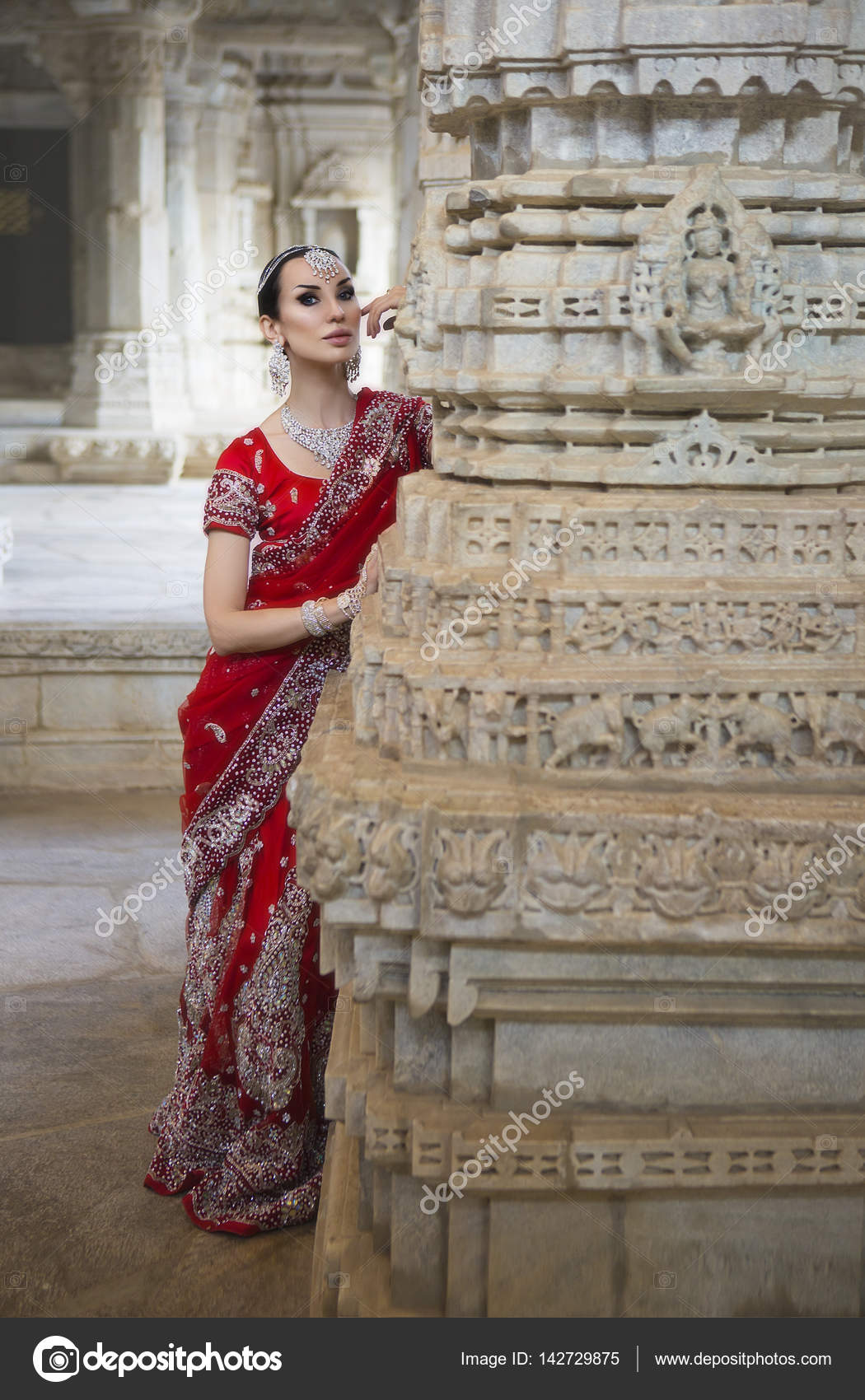 Beautiful Young Indian Woman In Traditional Clothing With Bridal