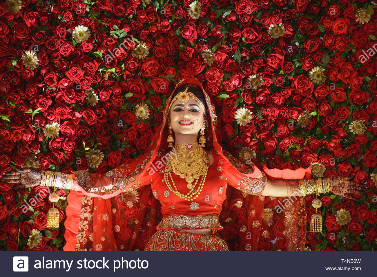 Beautiful Indian Bride In Traditional Wedding Dress Stock Photo
