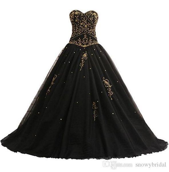 Black Gold Gothic Wedding Dresses Embroidery Bodice Beaded Corset