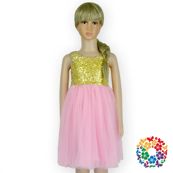 Latest Design Kids Baby Girl Fashion Dress Gold And Pink Dress