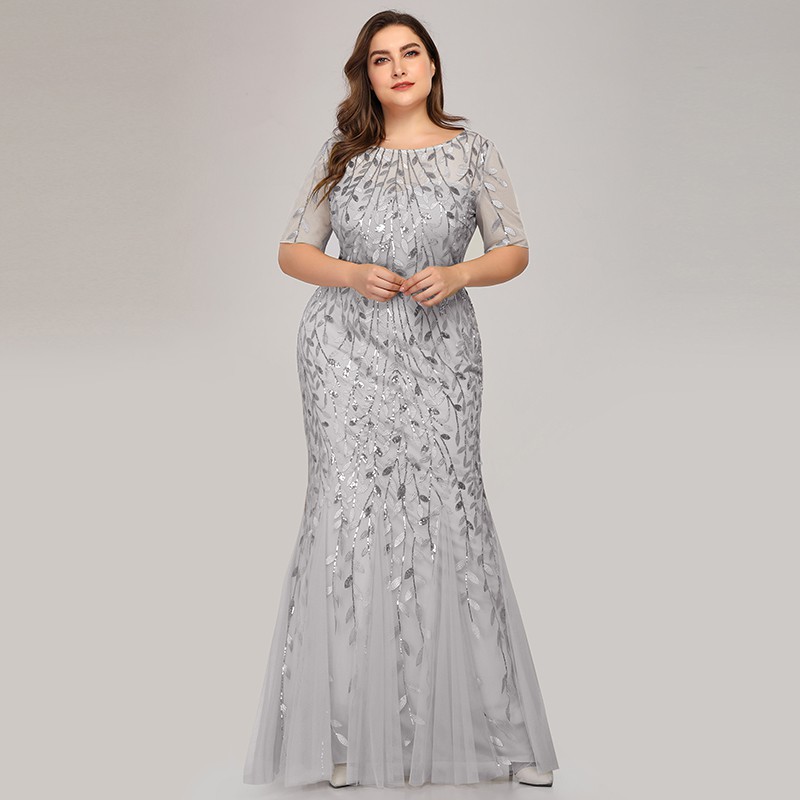 Ever Pretty Short Sleeve Lace Appliques Tulle Mermaid Long Dress