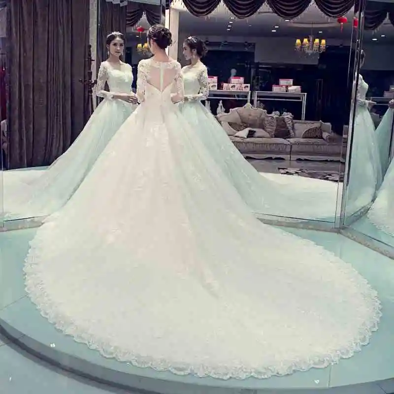 Buy Puffy Sleeve Long White Floral Bridal Gown For 2019 Winter
