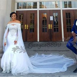 2020 Gorgeous Mermaid Lace Wedding Dresses With Cape Sheer
