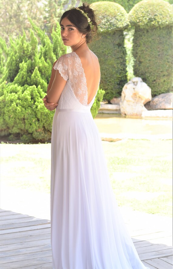 Abi Romantic Wedding Dress With Lace Top And Chiffon Skirt Etsy