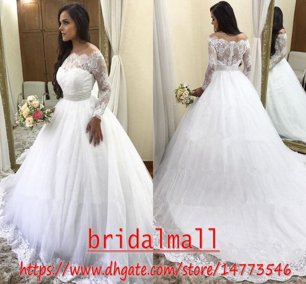 Discount Plus Size 2019 Sheer Long Sleeve Appliqued Lace Wedding