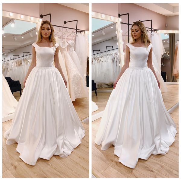 Sweetheart White Satin Simple Wedding Dress Sleeveless Elegant