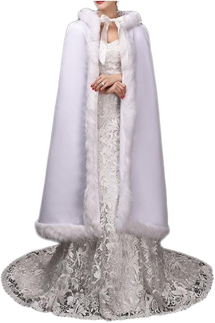 Hot Bridal Winter Warm Long Wedding Cloak Cape Ivory Faux Fur Cape