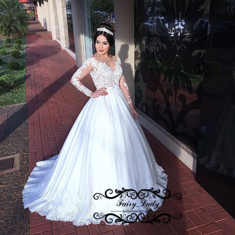 Plus Size Women Wedding Dress 2019 Sheer Lace Appliques Beads Long