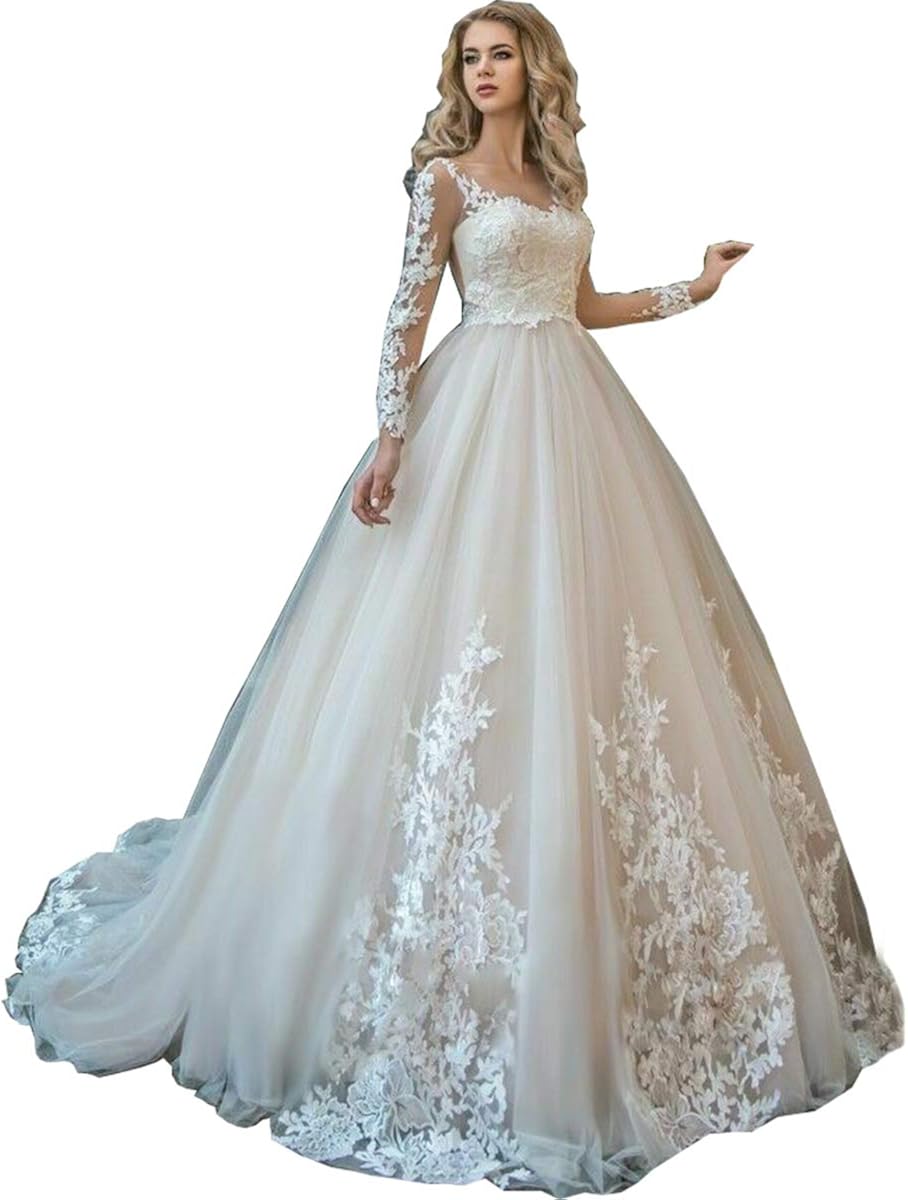 Molixin Women S Long Sleeves Wedding Dresses Bridal Gown Elegant