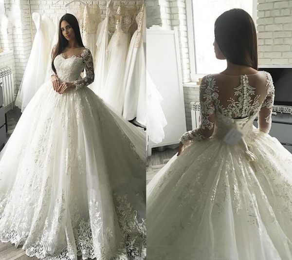 Long Sleeve Ball Gown Wedding Dresses 2019 Sheer Jewel Neck 3d