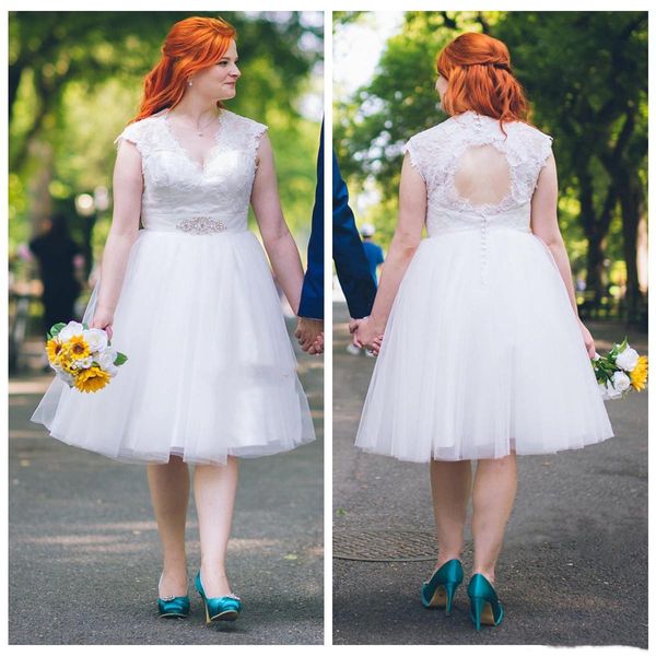 New Sheath Plus Size Wedding Dress Beach Summer Short Sleeve See