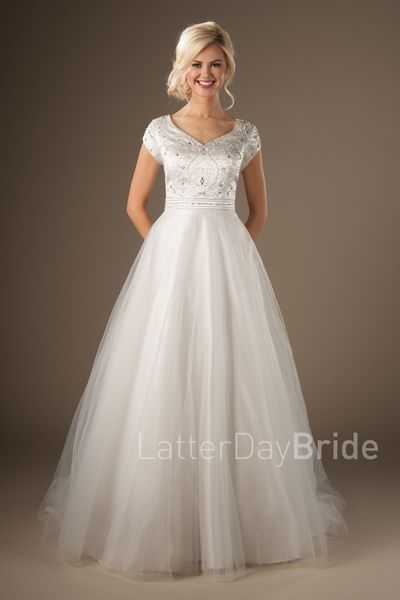 New Modest Wedding Dresses With Cap Sleeves Beaded Bodice Tulle
