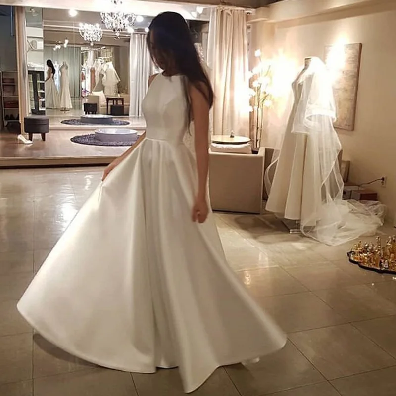 Bm007 Robe De Mariage O Neck Satin Simple Sleeveless A Line