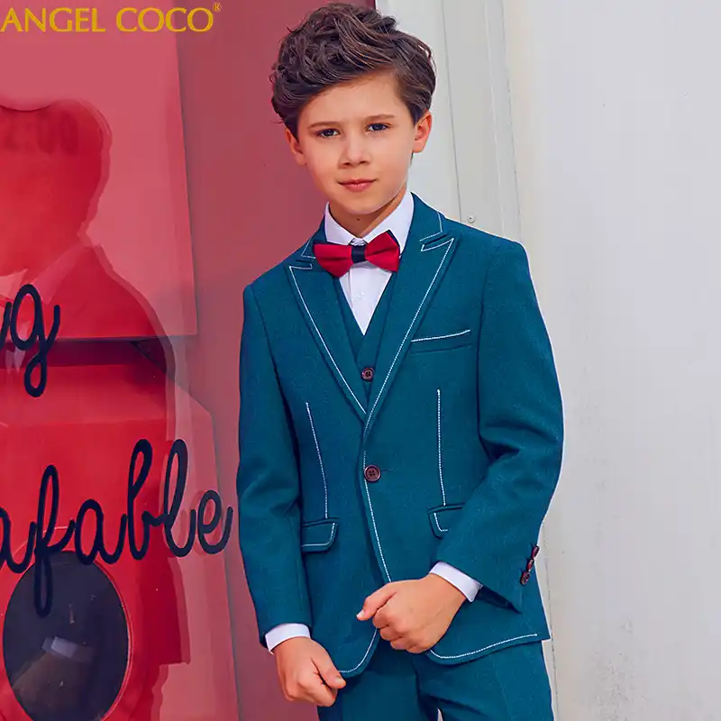 5 Pieces Green Kids Boy Suit Blazer Dress Suit England Style Boys