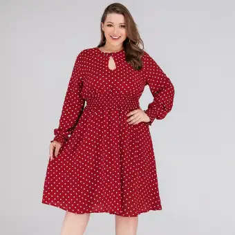 Bawei 6856 Mall Women V Neck Long Sleeve Dot Print High Waist