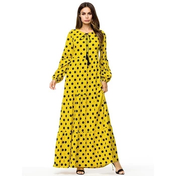 New Design Long Sleeve Maxi Yellow Polka Dot Fashion Casual