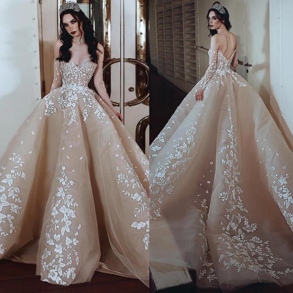Luxury Gorgeous Champagne Satin See Through Wedding Dresses 2020