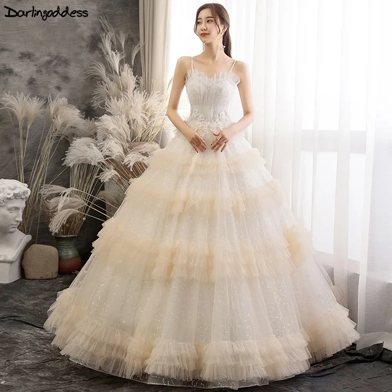 Mega Deal Elegant Bling Bling Champagne Wedding Dress 2019 Vestido