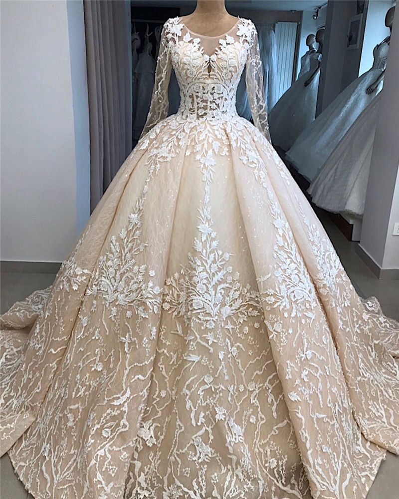2019 New Champagne Wedding Dresses Vintage Ball Gown Long Sleeve