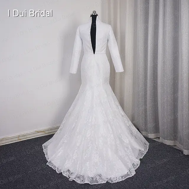 Online Shop Long Sleeve High Neck Wedding Dress Match Hijab