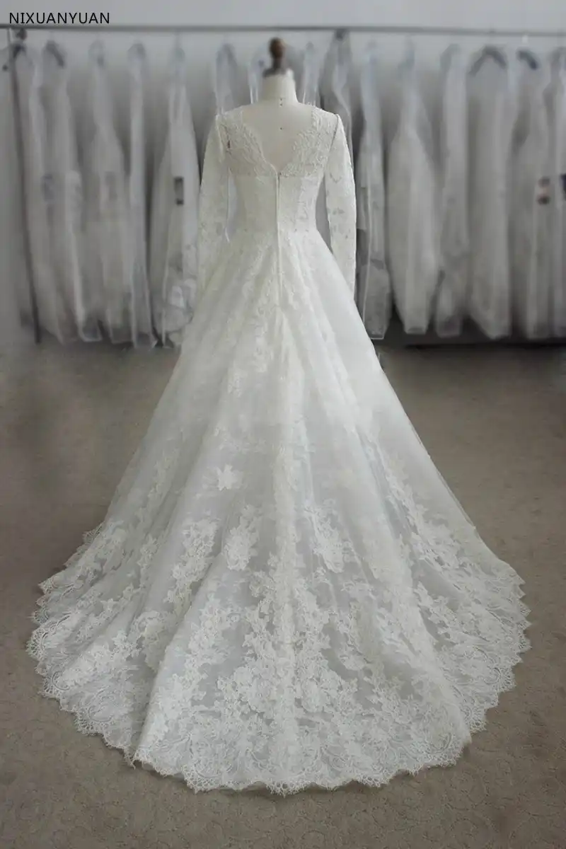 Elegant Long Sleeve Wedding Dress Muslim Dress 2020 Simple White