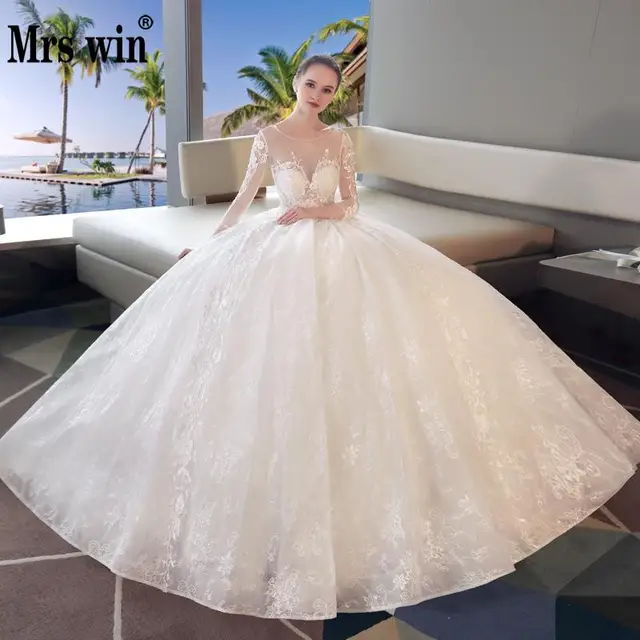 White Wedding Dress Long Sleeves Bridal Dress Off Shoulder Wedding