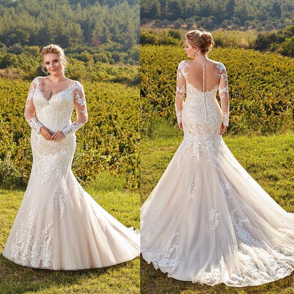 Discount Chic Lace Applique Plus Size Wedding Dresses Mermaid Long