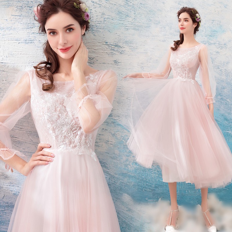 Ready Stock The Pink Bride Long Sleeve Wedding Toast Dress