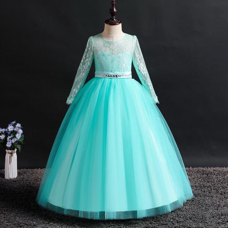Girl Long Sleeve Wedding Dress Maxi Kids Birthday Party Dress