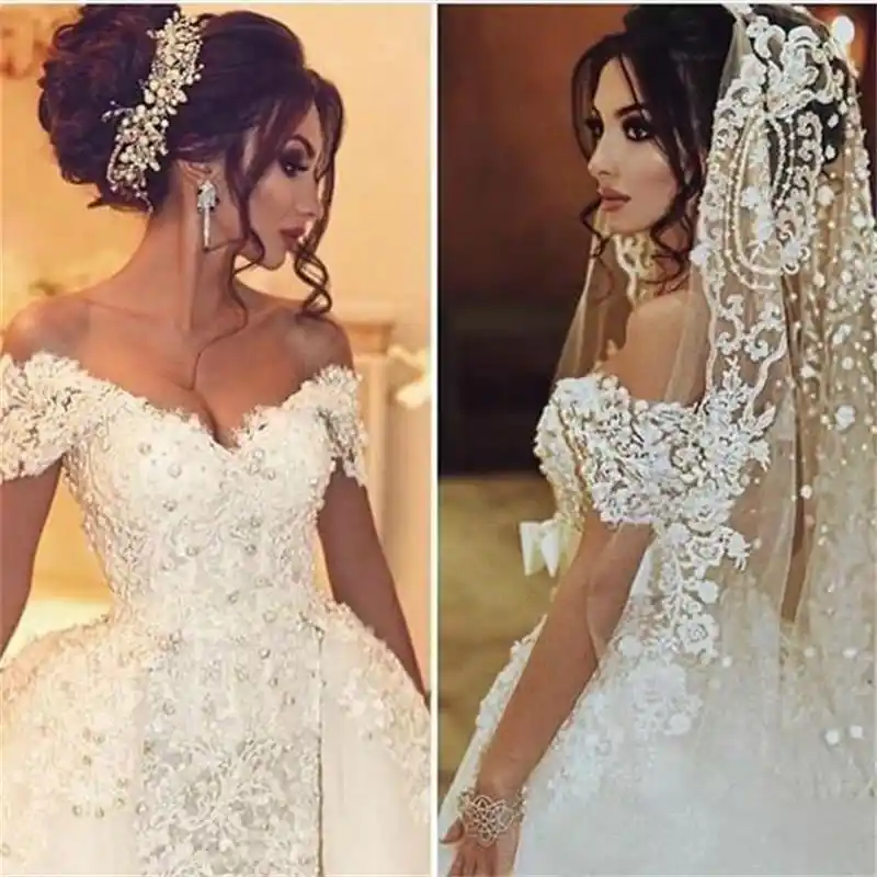 Zh3811g Overskirts Wedding Dresses Off The Shoulder Lace Appliques