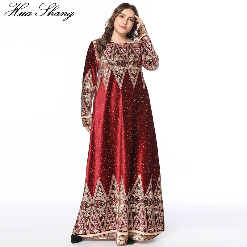 Winter Dress Women Long Sleeve Abaya Muslim Velvet Dress Plus Size